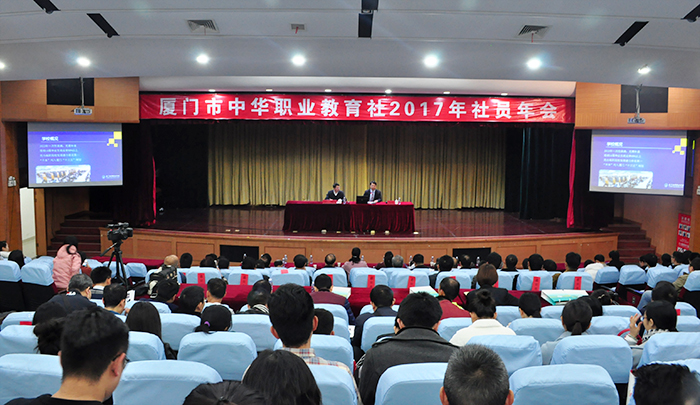 3月11日上午,厦门市中华职业教育社2017年社员年会在我校创业活动中心礼堂召开。厦门市政协副主席、厦门市中华职业教育社主任黄世忠,厦门市中华职业教育社专职副主任、秘书长翁玉华,厦门城市职业学院校长、厦门市中华职业教育社副主任唐宁,我校董事长、厦门市中华职业教育社副主任鲁加升,厦门市中华职业教育社原副主任、巡视员陈维加等领导出席会议,厦门市中华职业教育社社务委员及来自厦门市中华职业教育社团体社员单位的领导、代表和个人社员共60多人参加会议。我校全体教职员工也列席年会。