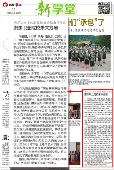 据悉,南洋学院已经连续三年承办海峡论坛·两岸职业教育论坛的分论坛。