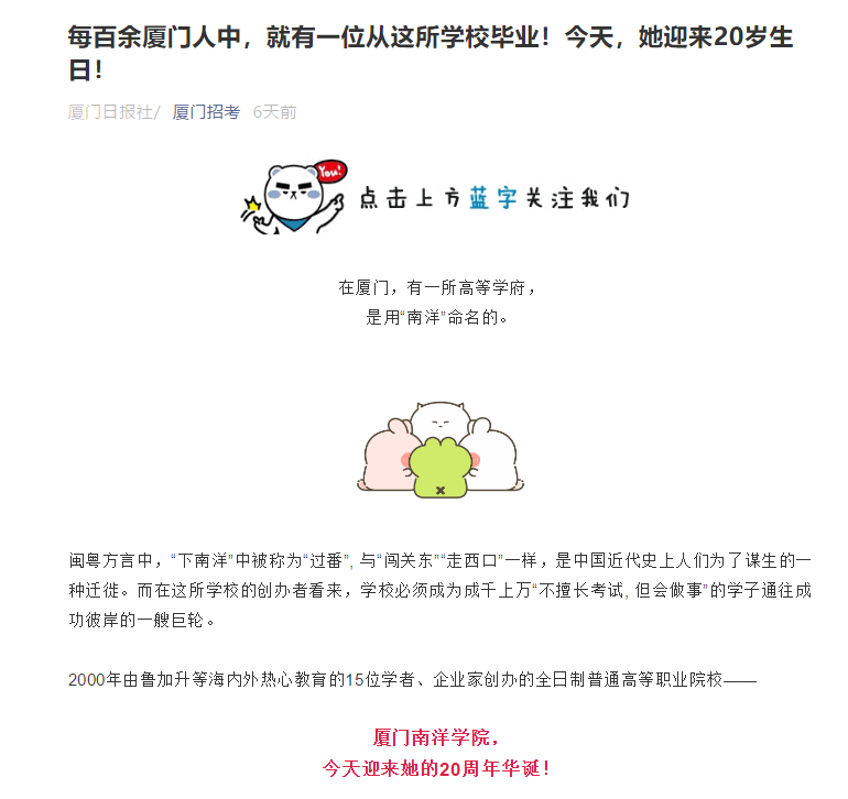 厦门招考:每百余厦门人中,就有一位从这所学校毕业!今天,她迎来20岁生日!