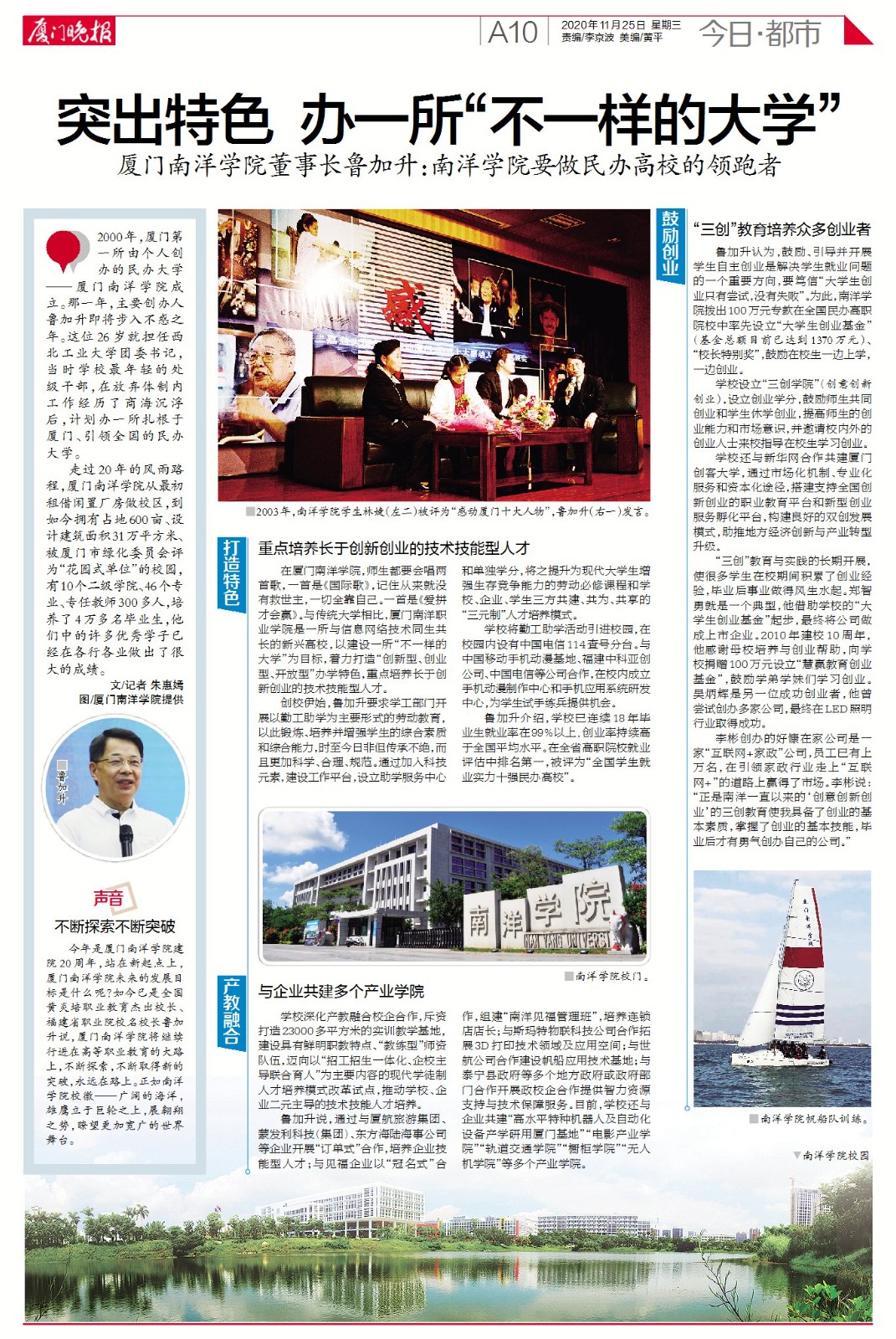 厦门晚报:突出特色,办一所“不一样的大学“