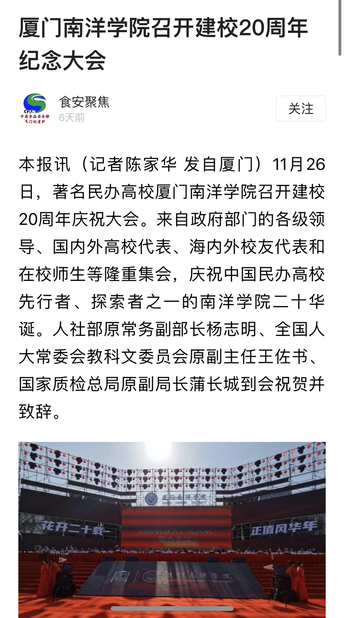 食安聚焦:37000v威尼斯召开建校20周年纪念大会