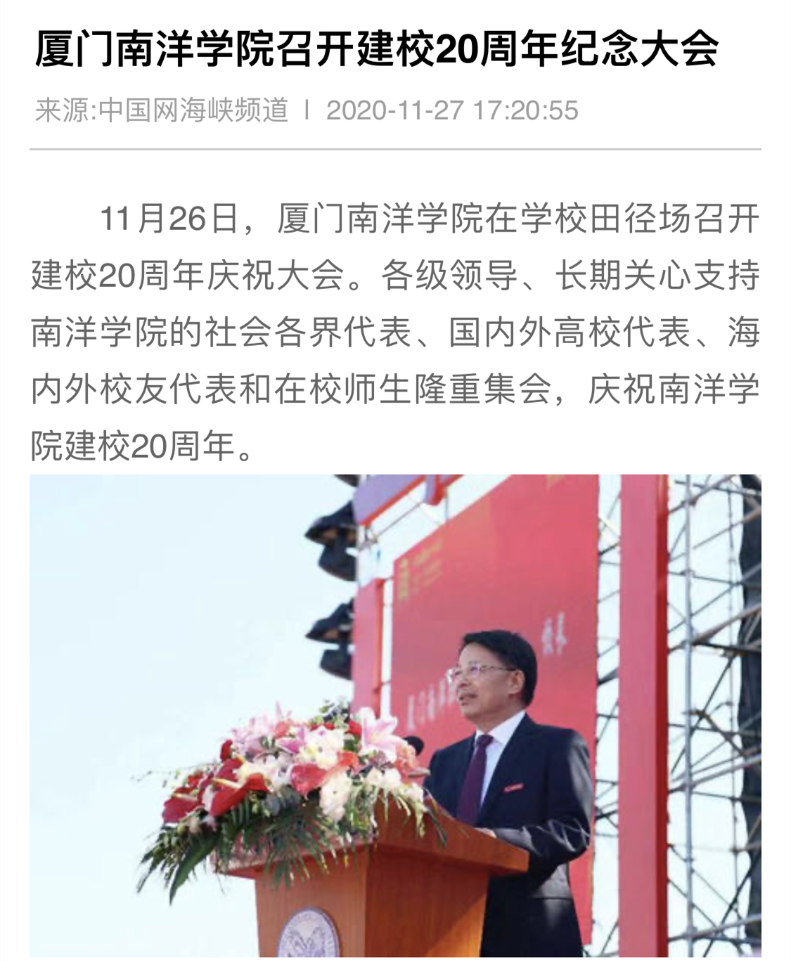 中国网海峡频道:37000v威尼斯召开建校20周年纪念大会