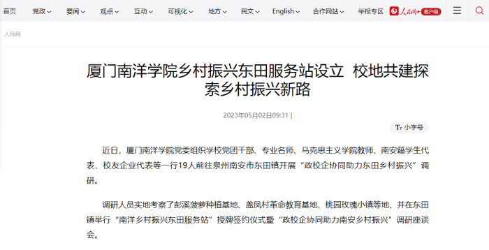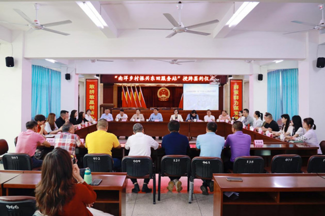 调研人员实地考察了彭溪菠萝种植基地、盖凤村革命教育基地、桃园玫瑰小镇等地,并在东田镇举行“南洋乡村振兴东田服务站”授牌签约仪式暨“政校企协同助力南安乡村振兴”调研座谈会。