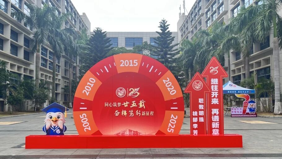 25周年校庆IP“阿南”的设计灵感以雄鹰为原型,身着蓝色学位服与方帽,胸前校徽象征荣誉与传承。圆润的大眼睛与灿烂笑容,展现青春与活力,双手贴脸的动作传递亲切与喜悦。整体设计简洁明快、亲和力强,IP形象保留了“阿南”本体的鹰爪,让南洋雄鹰的元素更加直观既寓意学子志存高远、勇敢逐梦,也彰显学校25年办学历程的辉煌与温暖。