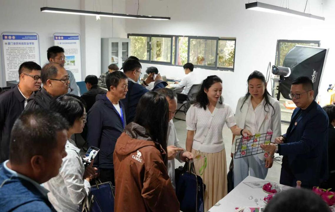 南洋新阶基地作为省级实践创新基地,基地内举办的25周年校庆“新阶成果展”吸引了考察团的目光。展览结合实物、图文、视频等形式,生动展示了基地在新的社会阶层人士培养、服务地方经济发展以及推动“三创”教育方面取得的丰硕成果。从优秀校友的创业故事到师生共创的科技项目,每一项成果都彰显了厦门南洋职业学院在凝聚新阶力量、赋能青年成长方面的卓越成效。