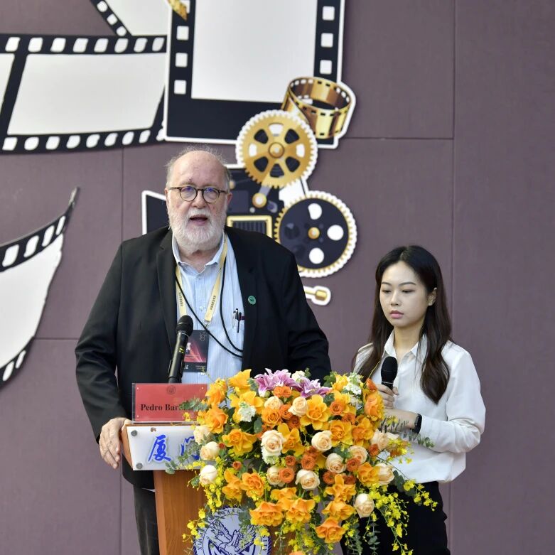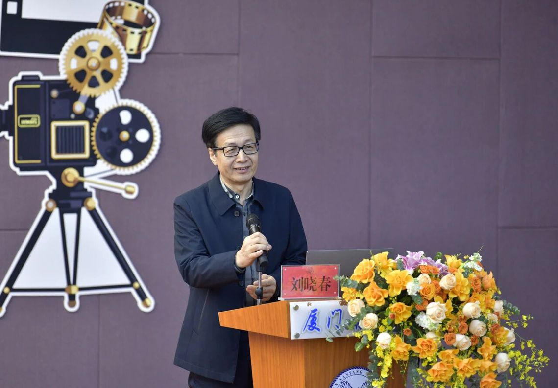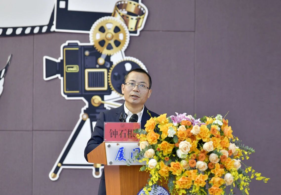 执行校长钟石根致辞,向远道而来的行业先锋与教育同行表示诚挚欢迎。他提到,我校拥有优美校园与完善设施,近年来吸引上百部作品取景,是厦门市重要影视拍摄基地;学校高度重视社会服务和文化传承创新工作,师生在戏剧节、技能大赛中屡获佳绩;学校致力于培育人才孵化与产业创新的聚合体,积极探索影视工业化标准,迎接虚拟制作新趋势,助力年轻电影人走向行业舞台,为中国影视产业培养输送更多优秀人才。