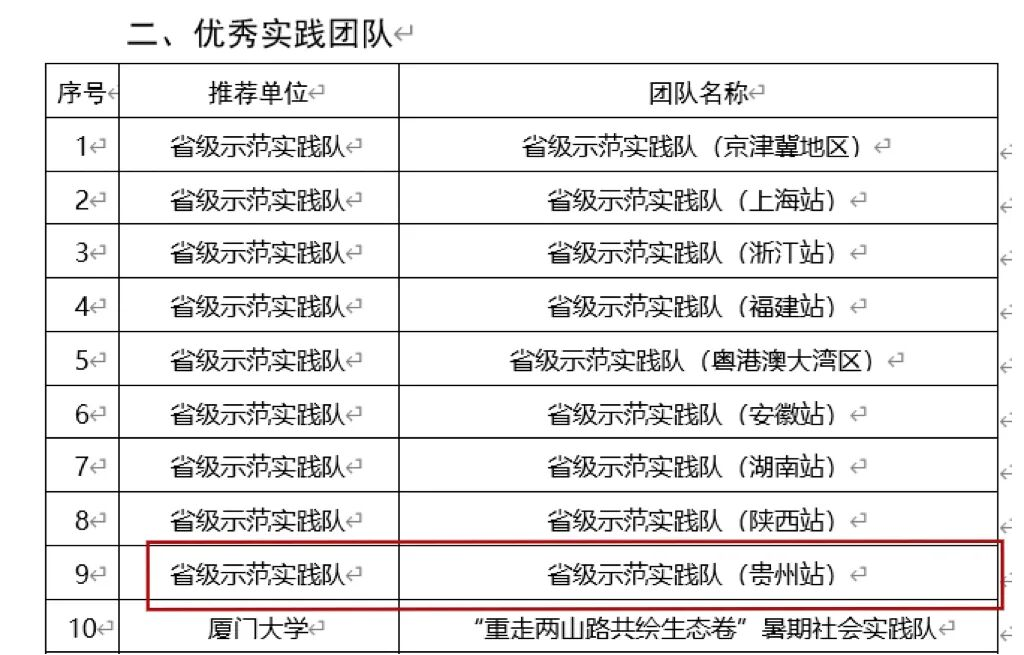 优秀实践团队获奖名单