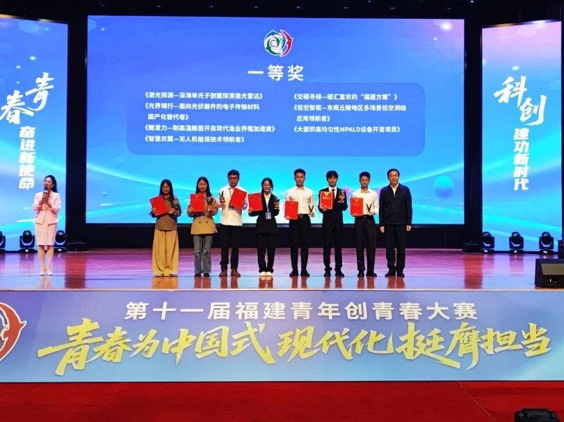 12月12日,由共青团福建省委、福建省教育厅、福建省人力资源和社会保障厅主办的第十一届“福建青年创青春大赛”圆满举办,我校学生团队与来自全省本、专科院校的参赛团队及青年企业家同台竞技,经过网评、初赛、复赛层层选拔,最终在现场总决赛中表现突出,荣获数字创新赛道创新组一等奖、科技创新赛道创新组三等奖。