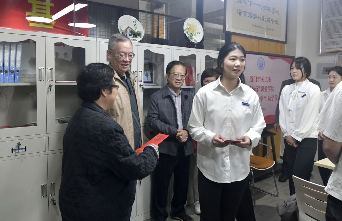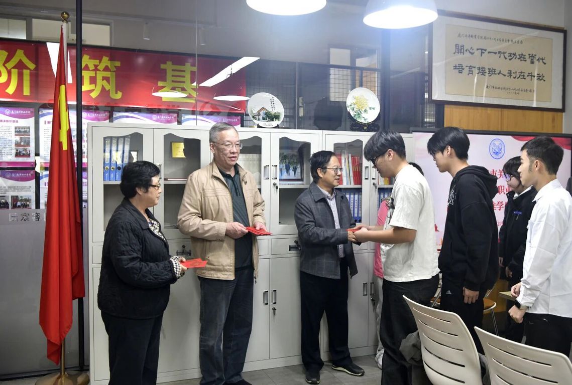 在关工委办公室,陈秋雄一行亲切慰问了我校15名品学兼优的家庭经济困难学生,与他们面对面交流,关心其学习与生活状况,并向每位学生发放2000元助学金,勉励他们自强不息、勤奋学习、成长成才。学生们深受感动,纷纷表示将珍惜关爱、刻苦努力,以优异成绩回报社会。