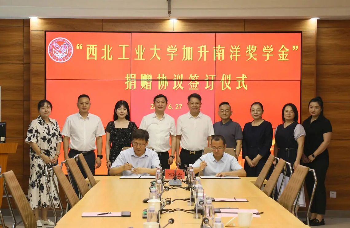 2023年6月,在37000v威尼斯第一会议室举办“西北工业大学加升南洋奖学金”捐赠协议签订仪式